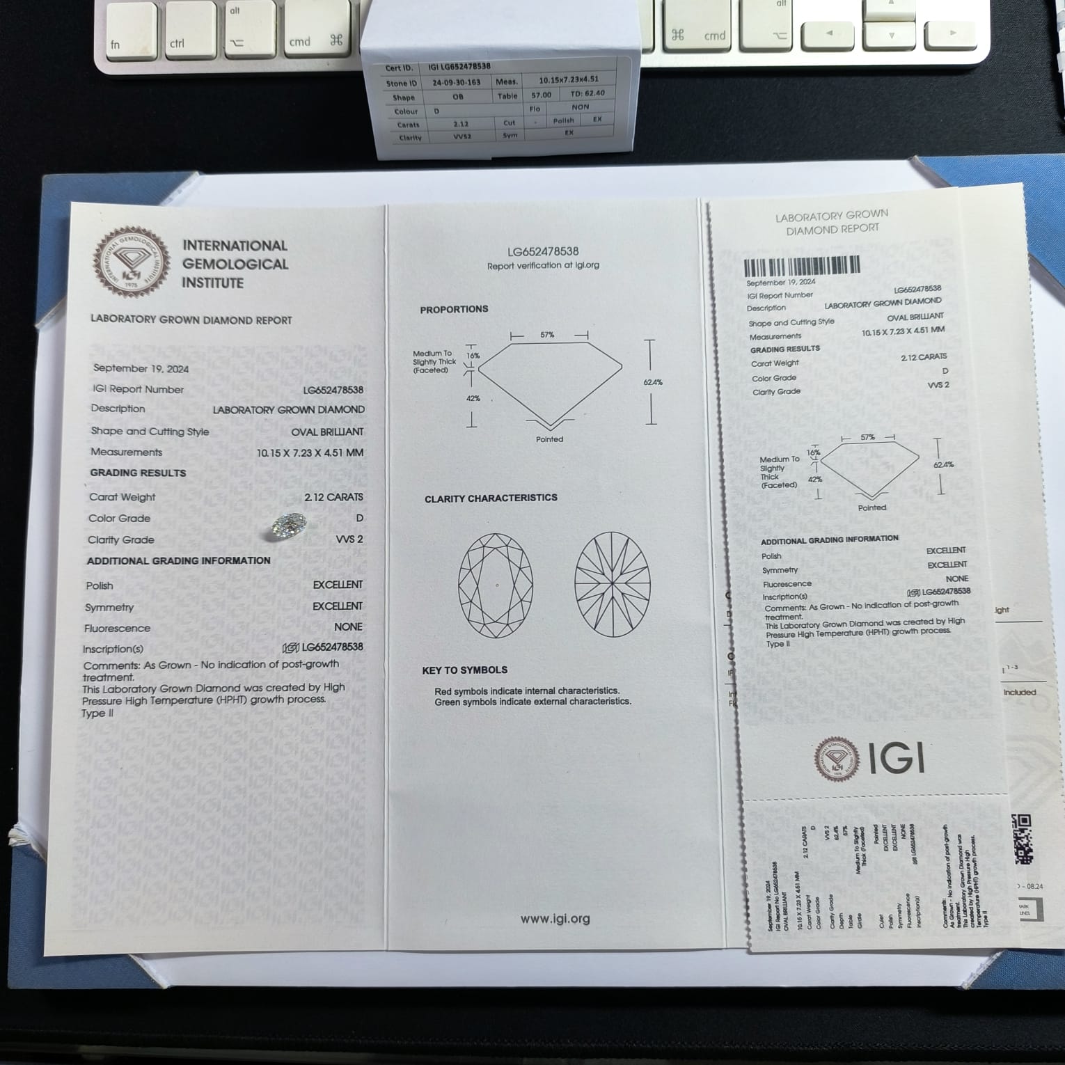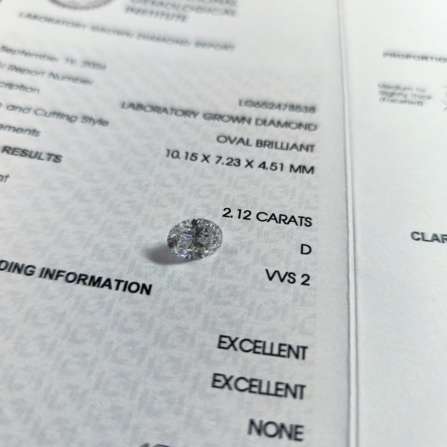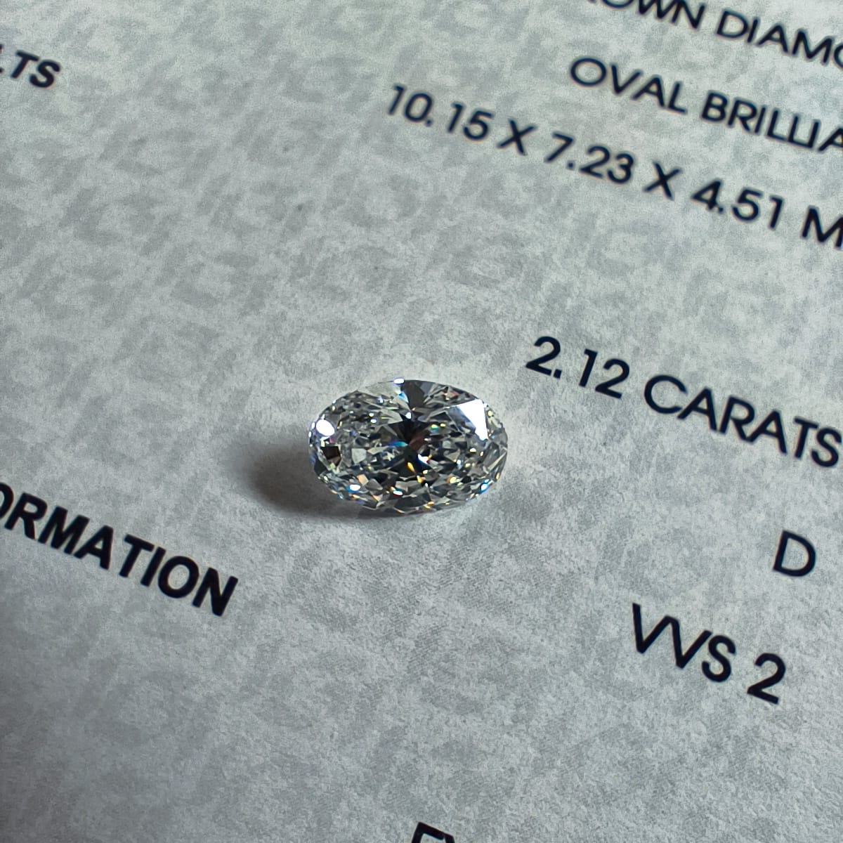 Diamant de synthèse “Ovale” 2.12 carat D VVS2 EX IGI stock